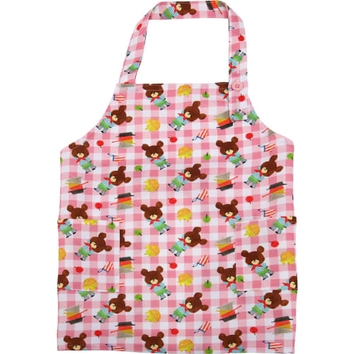 YAXEL Thick and Durable Apron for Kids, Height: 100-110cm, with Pockets, Elementary School Cooking Class, "Kuma no Gakkou" (The Bears' School) 50459