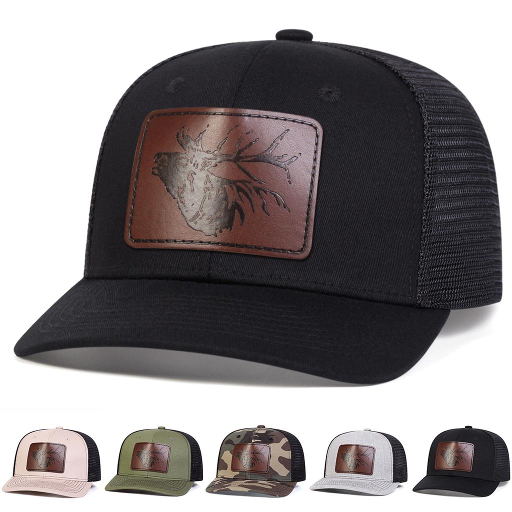 Boné de Beisebol de Malha com Patch de Couro Cabeça de Veado Grande Masculino Boné Micro Curvo Chapéu de Lazer Protetor Solar para Exterior Viagem Turismo Férias na Praia Primavera Outono