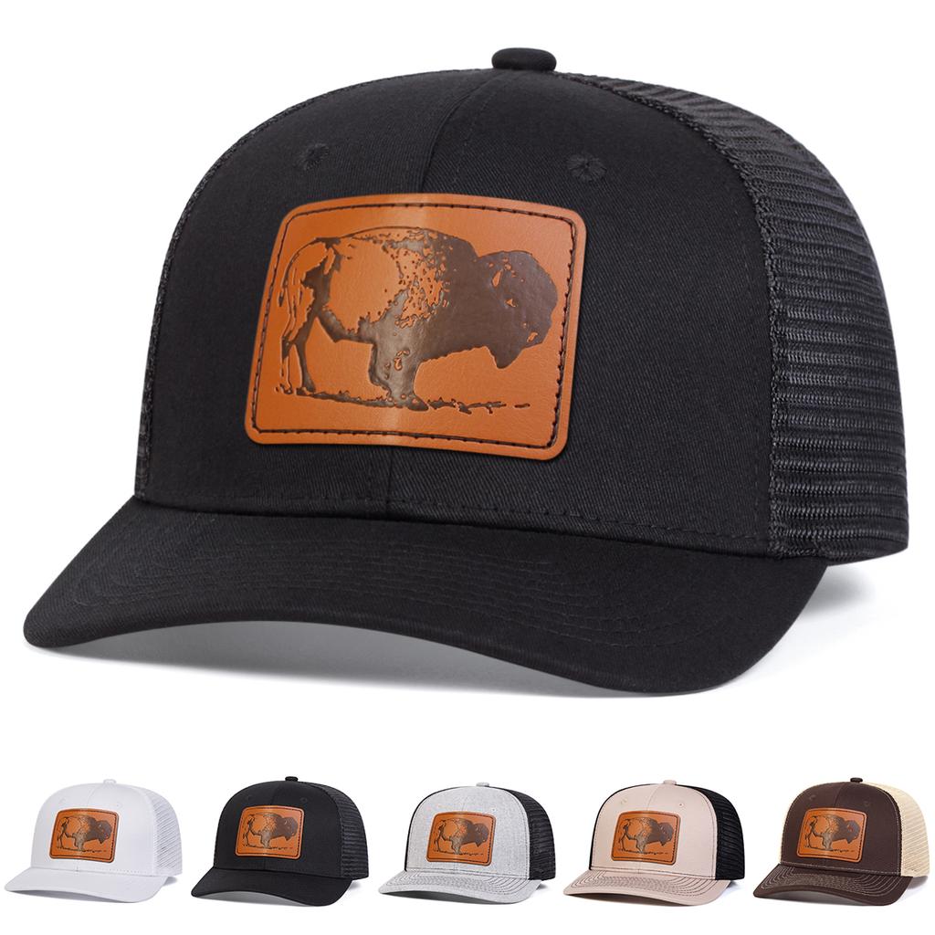 Boné de Beisebol de Malha com Patch de Couro Marrom Tigre Masculino Boné Micro Curvado Chapéu de Lazer Protetor Solar para Exterior Viagem Turismo Férias de Praia Primavera Outono