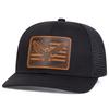 Boné de Beisebol de Malha com Patch de Couro Marrom de Águia e Bandeira Masculino Boné Micro Curvado Chapéu de Lazer Protetor Solar para Exterior Viagem Turismo Férias na Praia Primavera Outono