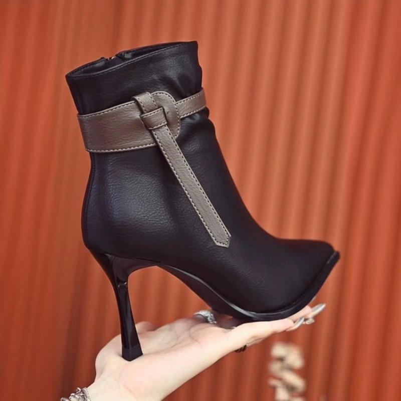 Temperament high-heeled short boots women's autumn and winter new small thin boots pointed thin heels fashion boots color matching
