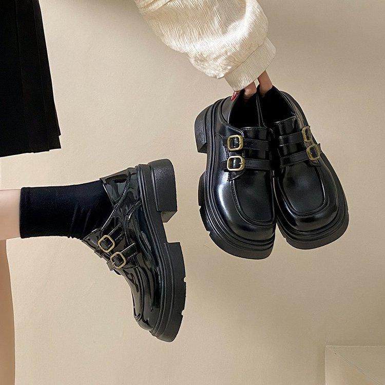 American retro small leather shoes women's 2025 autumn muffin sole platform loafers versatile and lightweight Japanese jk single shoes