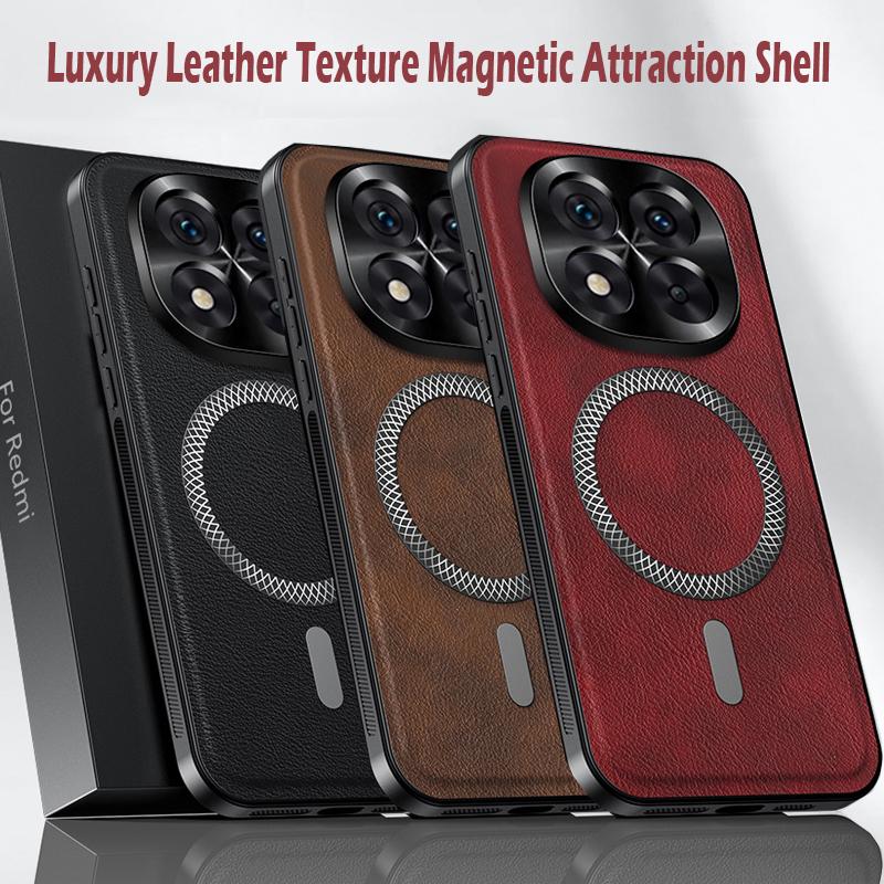 Luxury PU Leather Case For Xiaomi Redmi Note 14 13 12 Pro Pro+ 12 Turbo 5G Magsafe Magnetic Lens Protection Shockproof Cover