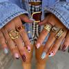 24PCS Colorful Star Almond Press on Nails Sweet Retro Polka Dots Patterns Simple French Fake Nails Wearable Cute False Nails Tip