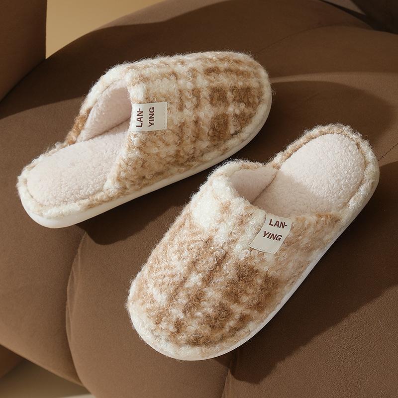New classic plaid cotton slippers autumn and winter home use couple silent non-slip velvet warm fluff mop