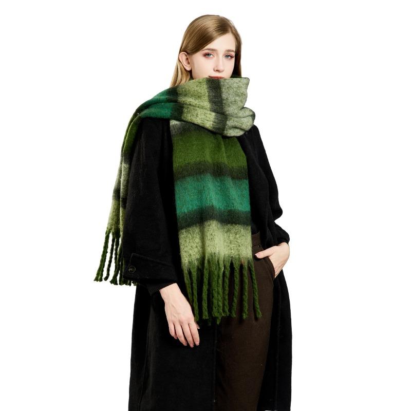 Color matching striped fringed scarf women's autumn and winter high-end mohair color warm versatile scarf shawl