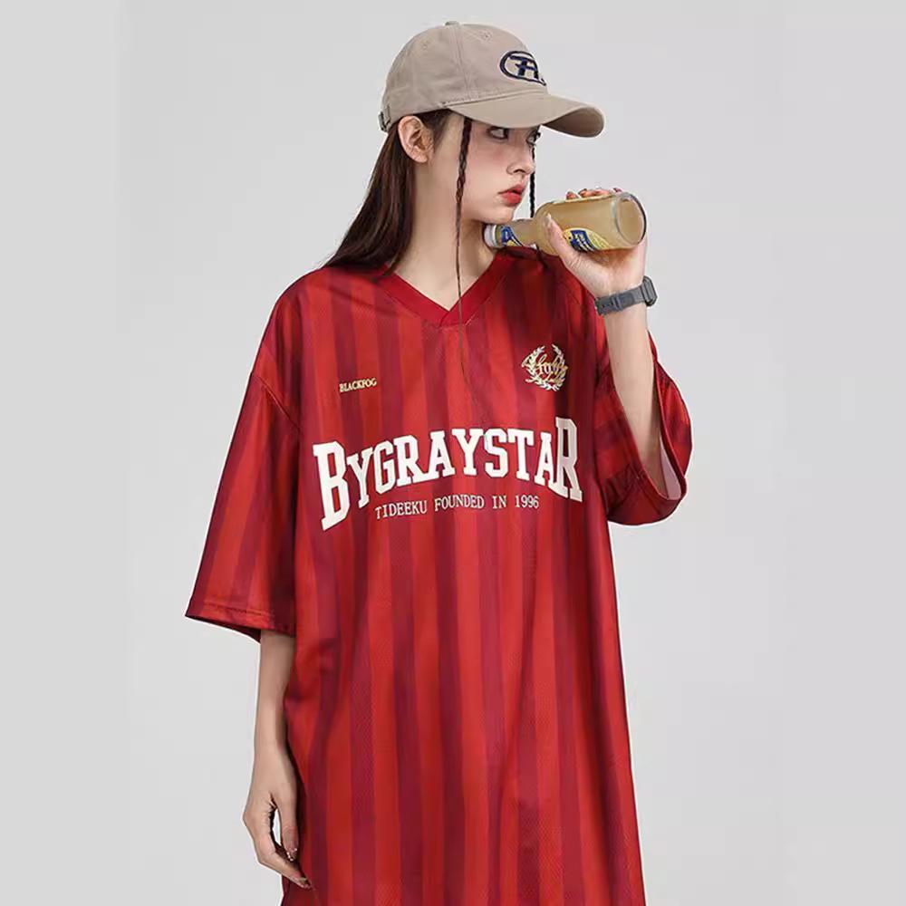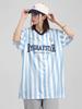 Unisex Street Sports Vertical Stripe V-neck T-shirt