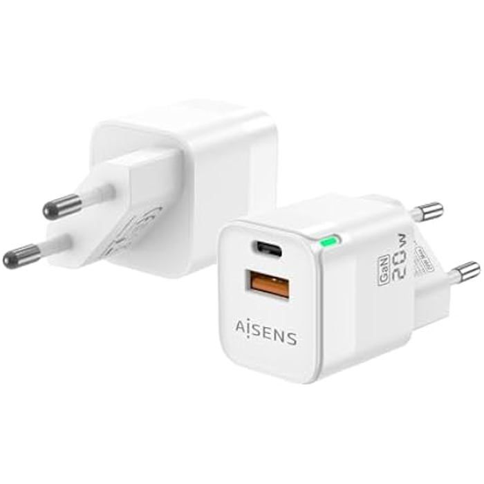 Chargeur GaN 20W - AISENS - ASCH-20W2P002-W - 1XUSB-C PD3.0 - 1XUSB-A QC3.0 - Blanc