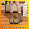 Internet celebrity round head sleeve popular medium boots 2025 new autumn and winter super fire pile boots flat short boots women
