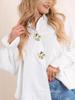 Elevate your wardrobe with this high-end women's solid color shirt featuring an elegant metal flower buckle. Designed for a loose and comfortable fit, this long-sleeve, casual style top is perfect for any occasion. Made from premium polyester, it offers a smooth and soft feel, ensuring all-day comfort. The shirt's round neckline adds a touch of simplicity and grace, making it a versatile addition to your fashion collection.