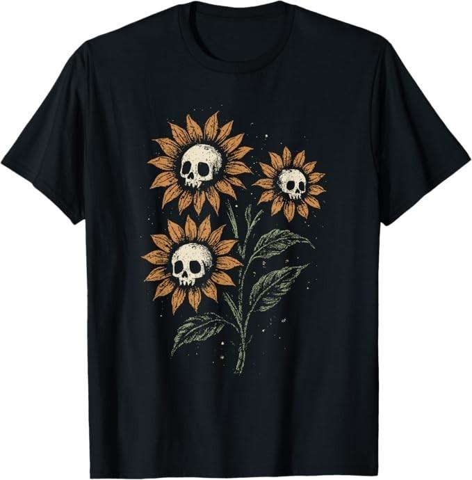 Skull Sunflowers Gothic Goth Creepy Cute Alt Grunge Y2K T-Shirt