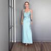 2025 Summer Satin High Waist Spaghetti Strap Backless Long Dress for Women - Sleeveless & Sexy