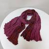 Johnature Cachecol Japonês Feminino Patchwork Vintage Cor de Destaque Elegante Quente Plissado Outono Inverno Cachecol Xale