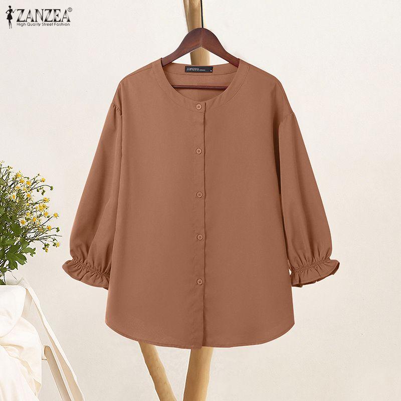 ZANZEA Women Casual Round Neck Solid Color Loose 3/4 Sleeve Blouse