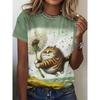 Camiseta com padrão impresso em 3D, verão e primavera, manga curta, gola redonda, top casual, roupa feminina