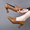 Soft leather high-heeled single shoes women's 2025 new sexy pointed middle heel dress to work professional work versatile shoes