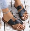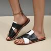 Chinelos casuais de fundo plano tamanho grande para mulheres 2025 novo conjunto de cores combinadas bico aberto tira única preto e branco comércio exterior calçados boca de peixe
