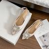 W5399-8 French pointed head shallow mouth rhinestone 2025 new one-pedal bag head sandals thick heel single shoes women's shoes