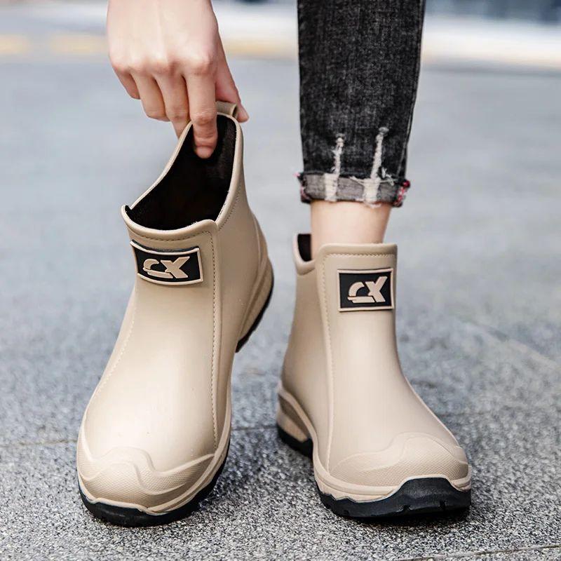 Botas de Chuva Impermeáveis de Cano Curto Estilosas e da Moda para Mulheres, com Solas Grossas e Calçado Aquático Resistente ao Desgaste
