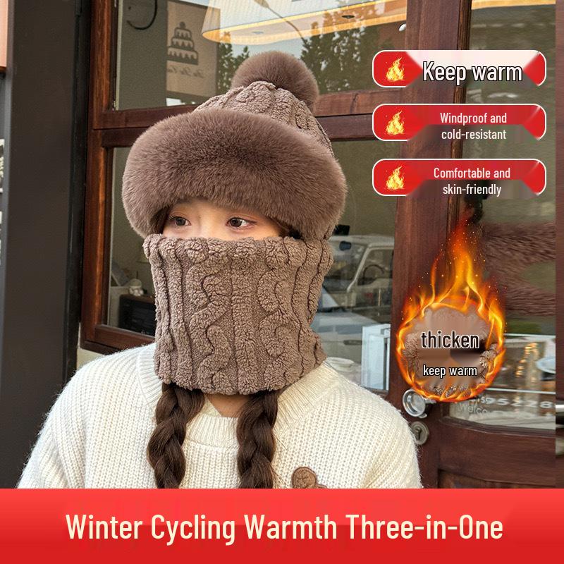 Women's Winter Cycling Full Face Hood with Earmuffs and Neckband, Windproof, Plus Velvet, All-in-One Hat.