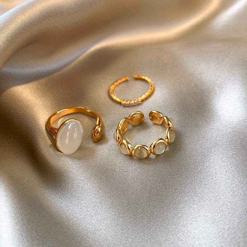 French Gold Cat's Eye Stone Open Ring: Women's Luxurious, Stylish, High-End Versatile Fashion Jewelry.