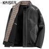 KAISER Men's Stand Collar Genuine Sheepskin Leather Motorcycle Jacket