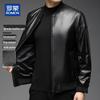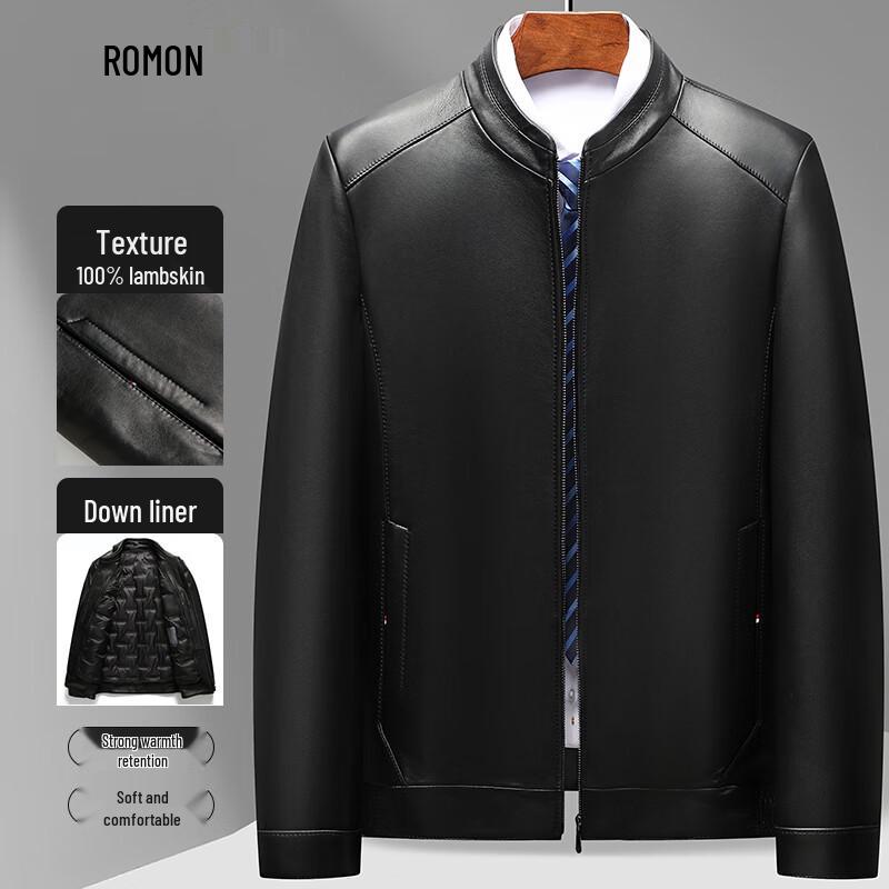 Romone Men's Genuine Sheepskin Leather Jacket with Stand Collar