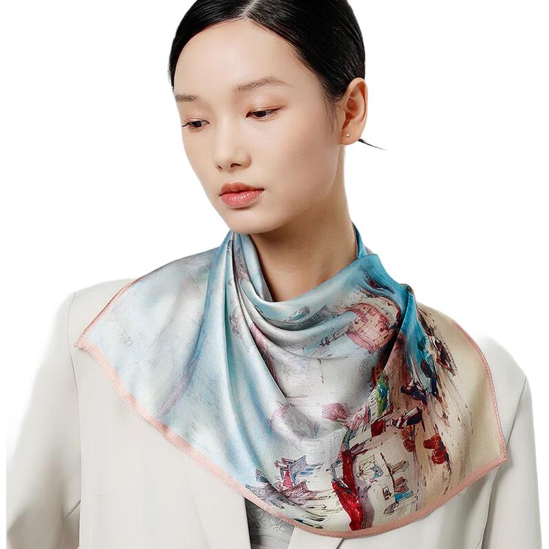 100% Mulberry Silk Double-Sided Printed Small Square Scarf