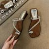 Rhinestone sandals outer wear women's 2025 summer new low-heeled square head cover toe fairy style with skirt beach sandals