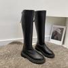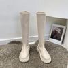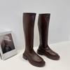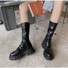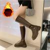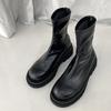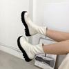 Botins de Inverno Sapatos Femininos Botas de Cano Médio Botas Baixas de Couro PU Macio Sapatos Moda Feminina Outono e Inverno Novo
