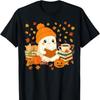 New Hot Cute Ghost Reading Enthusiast Halloween Ghost Coffee Women's T-shirt Kawayi Pattern T-shirt