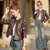 Jaqueta de couro fina para primavera e outono, casaco feminino casual de manga comprida, jaqueta de couro da moda