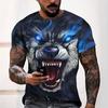 Características: Estampa de Lobo 3D, Unissex, Top Camiseta Street