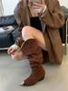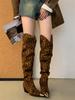 Botas Castanhas Acima do Joelho Salto Baixo Bico Fino Botas Acima do Joelho Mulher Leopardo Sapatos de Outono Salto Grosso Nova Chegada Bottes Femme