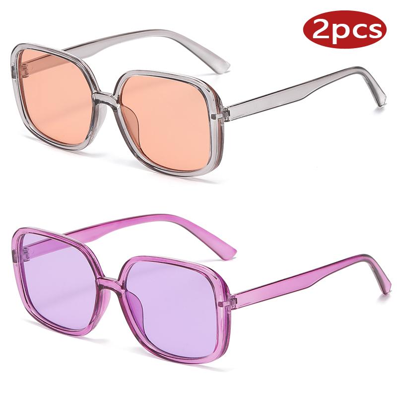 2pcs Square Sunglasses Woman Retro Vintage ColorfulSun Glasses Big Frame Female Outdoor Unisex Retro EyewearmTravel Goggles