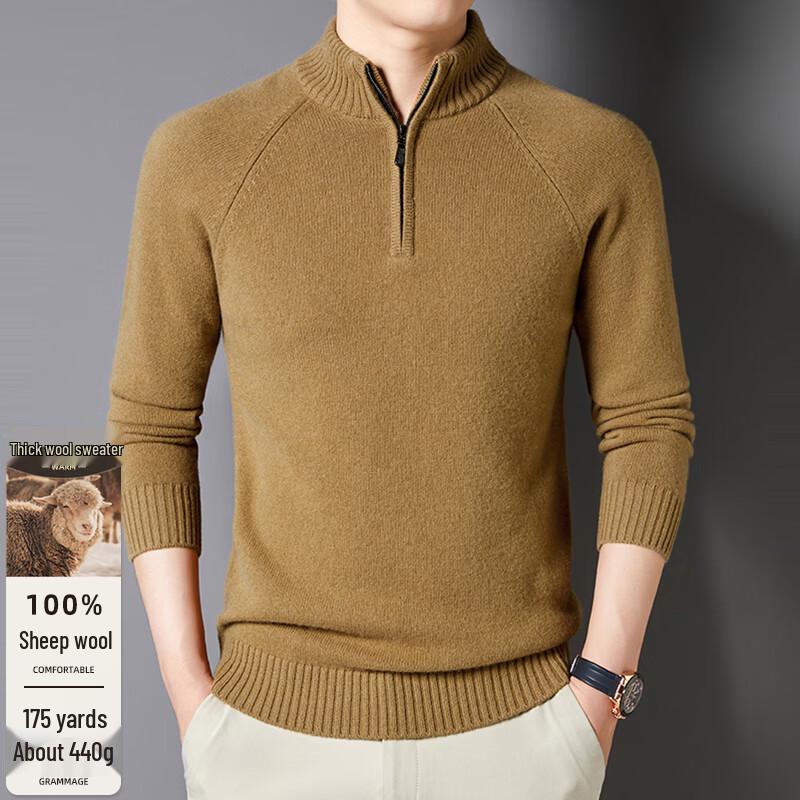 Men's 100% Wool Half-Zip Turtleneck Sweater