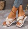 European and American large size slope heel slippers fashionable versatile bow 2025 new casual beach slippers women