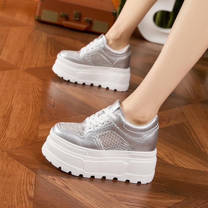 Little white shoes women's 2025 summer new thick-soled muffin shoes hollow breathable mesh sandals casual inner height-increasing women's shoes