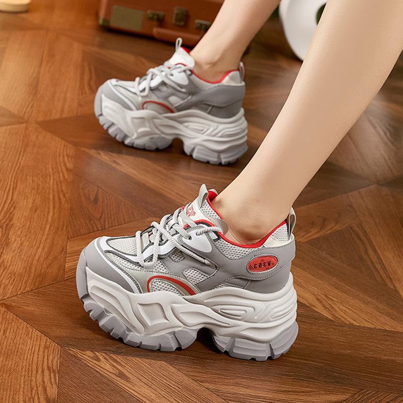 Thick-soled dad shoes women's 2025 spring new models, small people show their feet, small inner height increase women's shoes, mesh versatile casu