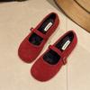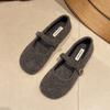One word with woolen material shallow mouth single shoes women's 2025 autumn and winter round head fluffy shoes low heel youth Doudou women's shoes