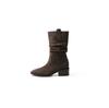 8Cm heightening V-mouth thick heel short boots children's new autumn and winter retro large tube circumference thin thick-soled short tube stacking b