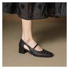 French hollow woven Mary Jane hole shoes single shoes 2025 spring and summer new square head one-word buckle with middle heel sandals