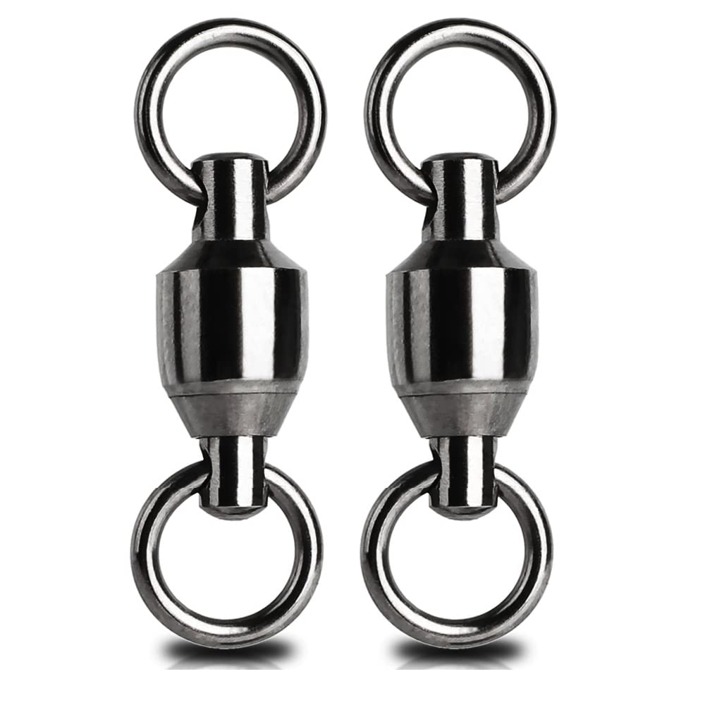"Especificação de anel soldado" Os anéis em ambas as extremidades do girador com rolamento giratório são especificação de anel soldado, o que os torna extremamente fortes e, ao contrário dos anéis partidos, não têm cortes, reduzindo o risco de a linha partir.