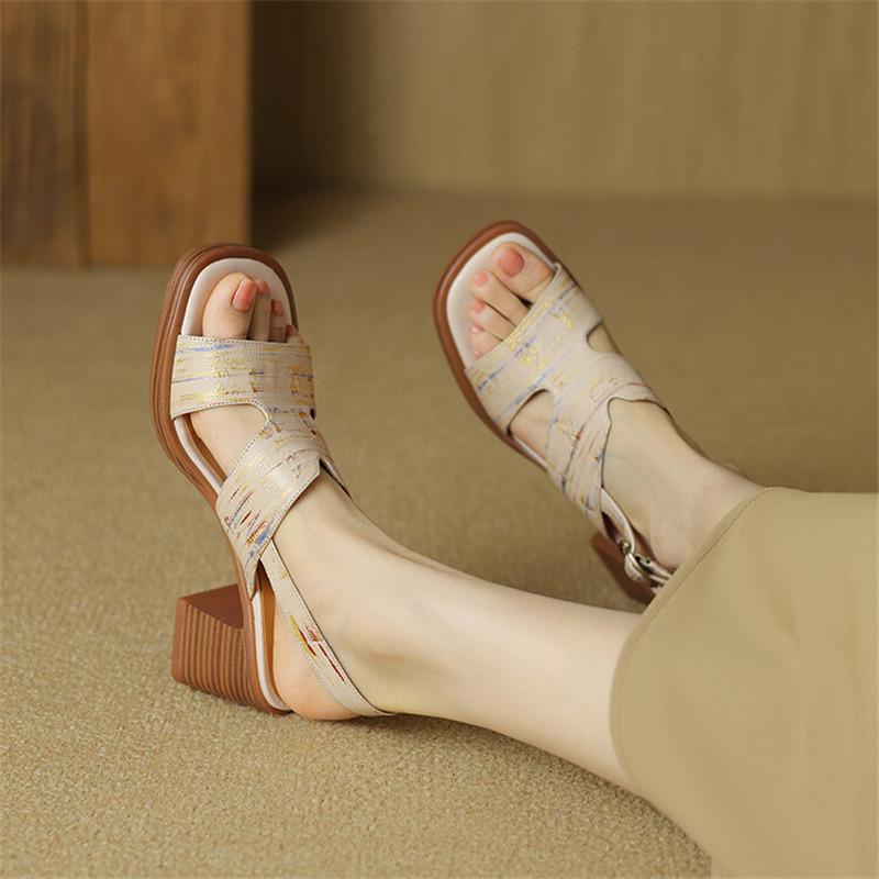 Fashion New Summer Sandals Square Toe Sandals for Women Chunky Heels Sandals Fashion Mixed Color Ladies Shoes High Heels Women Pumps