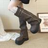 Fashion Retro Wide Tube Boot Women's Personality Small Size Long Boot Thick Bottom Heightening Fat MM Knight Boot PU Material Round Toe