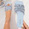 Women Slippers Summer Sexy Slippers Casual Comfortable Shoes Solid Color Crystal Sandals Square Toe Flat Heel Slippers