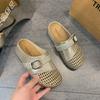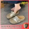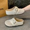 Hollow bag head half slippers women's inner height increase 2025 summer new outer wear woven breathable muller shoes mesh cool slippers