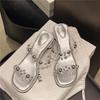 2025 spring and summer new French square head high-heeled slippers women's fashion versatile transparent fashion one-word women's shoes