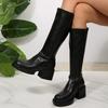 Fashion Women's Knee High Boots Fashion Plus Size 35-42 Thick Heels Knight Boots Women 2025 Side Zipper Pu Leather Long Botas Mujer