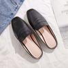 Fashion Black leather slippers, closed-toe mules, size 31-44, flat sole, fashionable design, new style for spring and autumn 2025